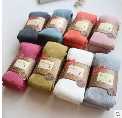 These high-elastic pantyhose combine warmth and style with full cotton fabric and thermal properties. Designed with a vertical pattern and available in vibrant candy colors, they offer a flattering fit while keeping you comfortable in cooler weather. Ideal for pairing with dresses, these tights provide durability and flexibility for everyday wear.