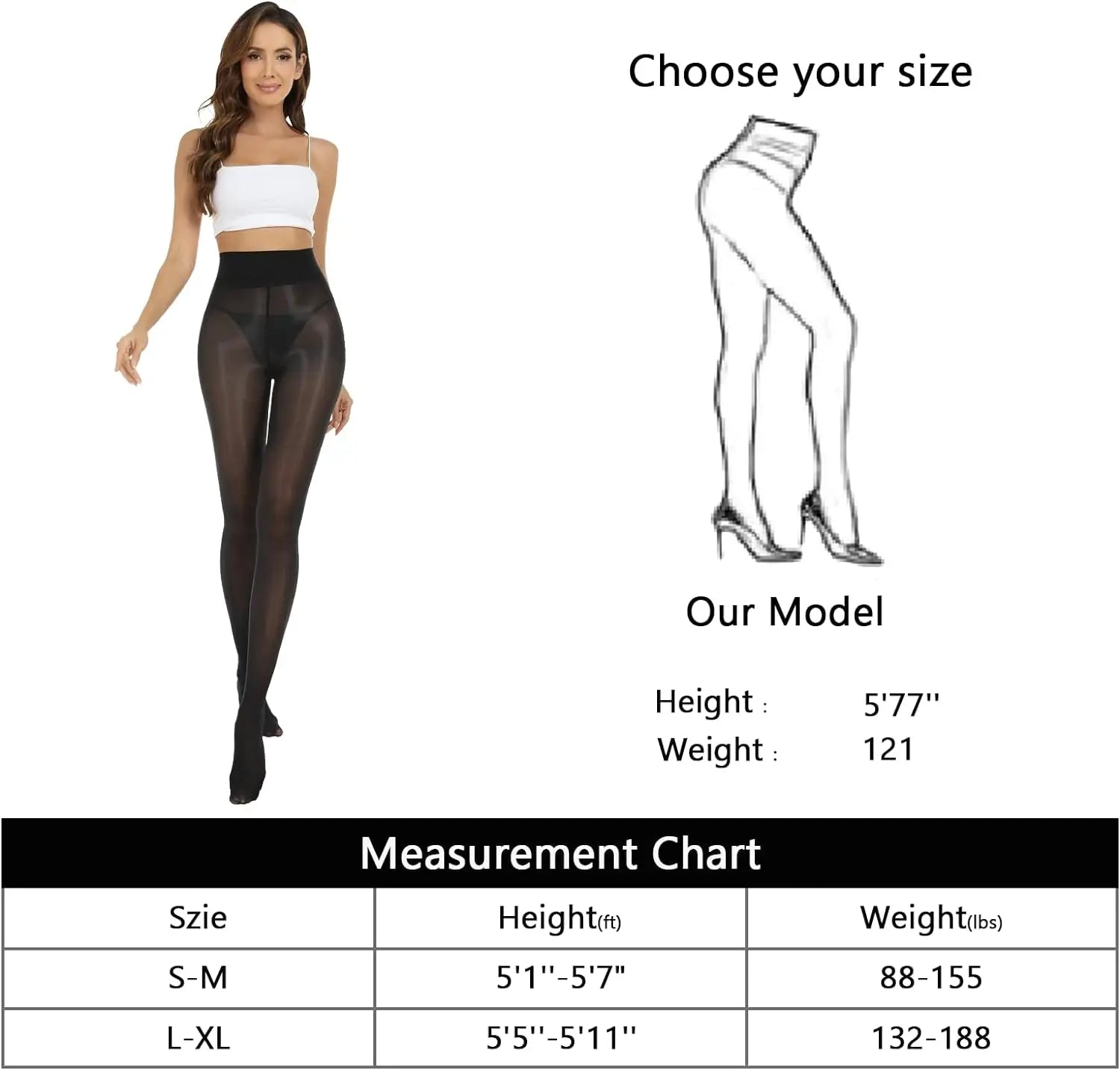 Women's High-Waist Sheer Tights - Silk Comfort, Oil Shimmery Nylons