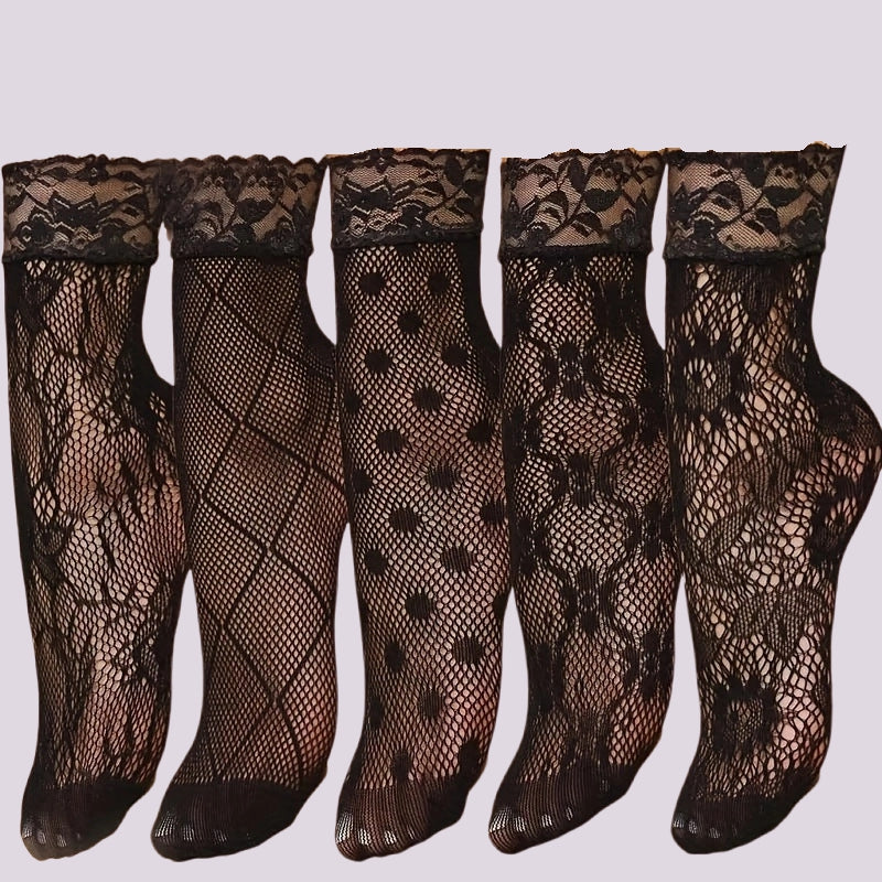 Plus-Size Ultra-Thin Nylon Mesh Fishnet Stockings (5-Pair Lace Ankle Set)