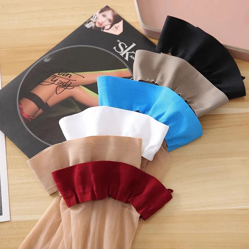 Experience elegance with these 10D thin silk stockings designed to complement and slim your legs effortlessly. Featuring a non-slip over-the-knee design and a stylish contrast color, they provide both secure wear and a striking visual effect. Packaged for retail, these hosiery pieces combine comfort and sophistication, making them an essential addition to any wardrobe. Perfect for enhancing your outfit while ensuring lasting fit and durability.